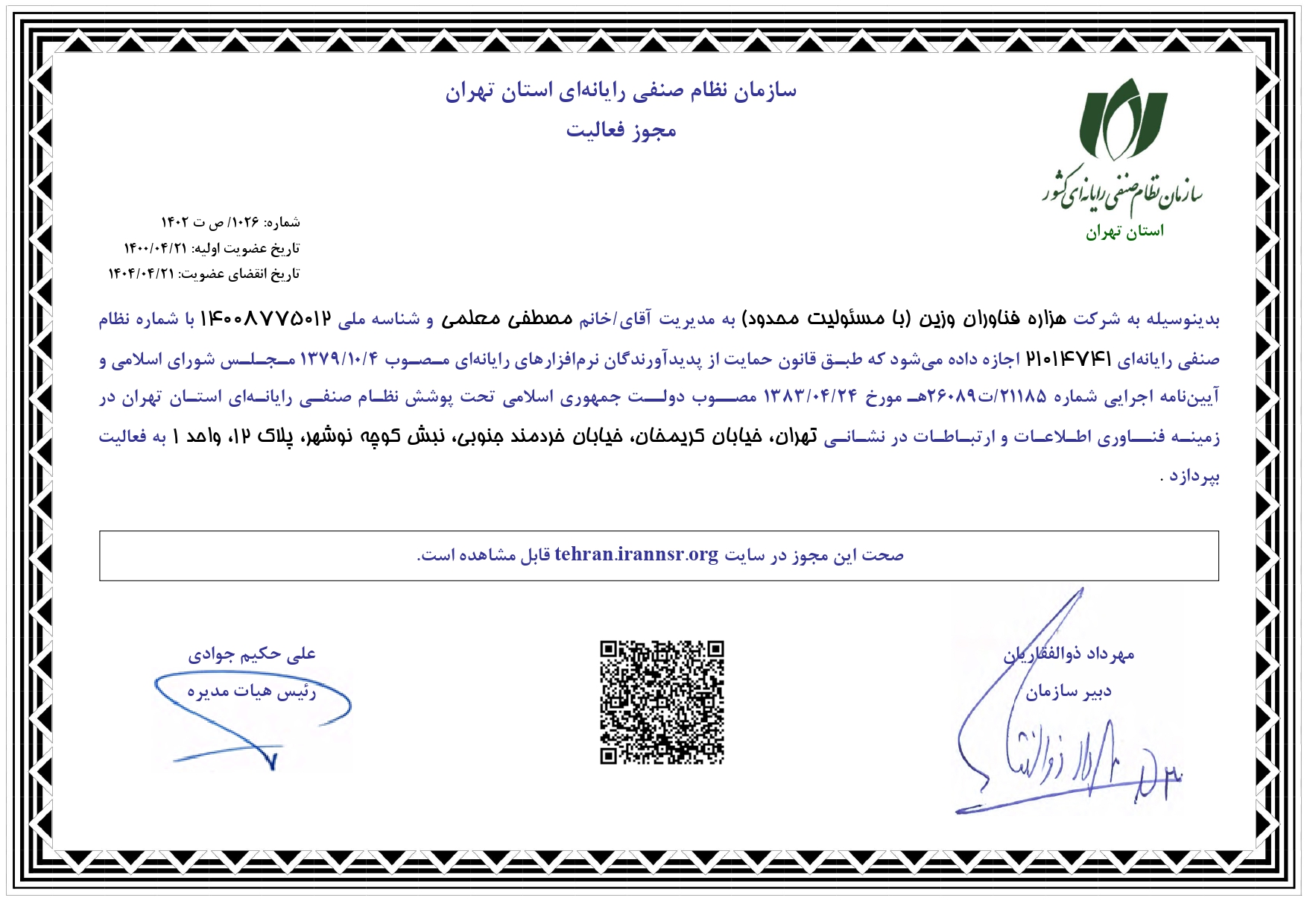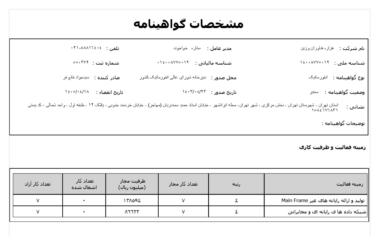 • ایمیل: info@hezarehfanavaran.com